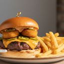 Burgare med 150 g högrevkött, cheddarost, jalapenos, chilli cheese och pommes