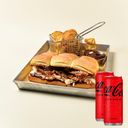 6 st pulled sliders, 4 st friterade chili cheese nuggets, 2 valfria såser, 2 dryck. Välj chicken eller pork i nästa steg!