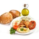 Orientalisk bröd med kikärtor, vitlök, rostade nötter och tahinisås.