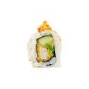 10 makibitar. För den som är ute efter en extra smakupplevelse och vill spetsa till det. Tempuraräka och krispig gurka - toppad med avokado, teriyakisås och kimchisesamfrön. Läckert och gott! Serveras med teriayakisås, inlagd ingefära, wasabi och sojasås. 1,1kg CO2e.