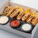 En blandning av grillade köttbitar, grönsaker och smakfulla såser. Perfekt för fest!