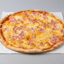Dubbelinbakad. Tomatsås, ost och skinka.