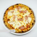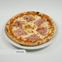Dubbelinbakad. Pizza med skinka, räkor och champinjoner.