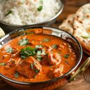 Kyckling tillagad i en mild kryddig tomatsås blandad med smör och grädde