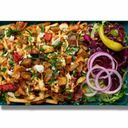 God kebabtallrik. Pommesen fortfarande någorlunda krispiga och bra (men lite) sås. Dock kan kebab dudes gärna skippa auberginen och zucchinin - de hör inte hemma på tallriken.