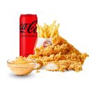2 Zinger och 8 Crispy Strips. Innehåller också 2 dippsåser, 2 mellan pommes och 2 mellan dryck.