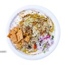 Ett indiskt tilltugg med samolina, friterad potatis, kikärtor, yoghurt och chutney.