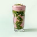 Ismatcha latte med ruby-smak – toppad med ett luftigt ruby foam och matchapulver. Mjuka, bäriga toner med en naturligt fruktig karaktär.