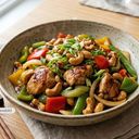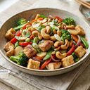 Served with stir-fried chicken breast, vegetables and cashew nuts