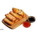 Serveras med 1 vårrulle (fläskfärs), kycklingspett, fläskspett med jordnötssås, friterade räkor med sötsur sås, kycklingfilé med vitlök, chili och basilika