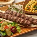 Två spett med shishkebab, kolgrillade över öppen eld för perfekt smak. Serveras med ris eller pommes frites, färskt bröd, hummus, muhammara och tzatziki.