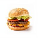 Amerikansk ost smälts mellan två färska burgare (2 x 100 g) och serveras på ett mjukt bröd med rostade sesamfrön. Välj så många tillbehör du vill!