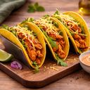 Serveras med kyckling, ost, tacos shell, ruccola och valfri sås