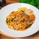 Stekta risnudlar med ägg och grönsaker. Toppas med citron och jordnötter. Välj protein i nästa steg. Serveras med en 33 cl dryck.
