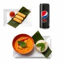 Röd Curry + välj mellan(3 vårrullar/3 friterad kyckling bitar/3 ebi fri)+ valfri läsk