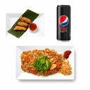 Pad Mhed Mamauang + välj mellan(3 vårrullar/3 friterad kyckling bitar/3 ebi fri)+ valfri läsk