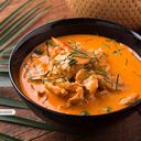 Serveras med tomat, lök, citrongräs, chili Koriander, limeblad och stråsvamp