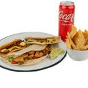 Mixa 1 st Taco, 1 st Taco Grande, 1 st Quesadilla som du vill. Dryck & totopos ingår. OBS! Vänligen glöm inte att lägga till lök och koriander i din beställning om ni önskar det.