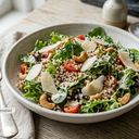 Sallad med babyspenat, ruccola, chevreost och pinjenötter örtolja
