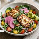 Sallad med halloumi, avokado, valnötter, honungsmelon och honung