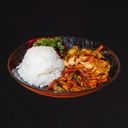 Wok med extra stark thai basilika och chili / Wok with spicy thai basil, chilli, vegetables and *Optional main ingredient (Mycket stark)