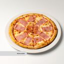 Tomatsås, ost, skinka och champinjoner.