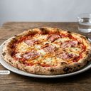 Pizza med tomatsås, ost, skinka och gorgonzola