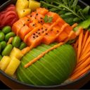 Välj protein i nästa steg, Avokado, Edamame, Mango, Bönsgroddar, Goma Wakame, Chili Gurka, Säsongens Salladsmix, Inlagd Ingefära, Inlagd Rödlök, Sushiris, Cashewnötter, Toppad Med Kokos, Hemmagjord Teriyakisås, Hemmagjord Chilimajo + dryck.