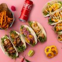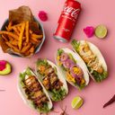 12 st Soft Tacos, en nachotallrik och tre drycker.