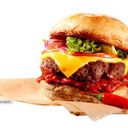 Krispig burgare med saftig fyllning och fräscha grönsaker, serverad i mjukt bröd.