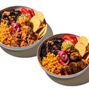 Välj mellan varm marinerad Bjärekyckling eller varma vegobites för vegansk variant. Innehåll: Varmt svart råris, guacamole, marinerad majs, paprika, picklad rödlök, majschips & paprika-chilidressing. Serveras från 10.00. Koldioxidavtryck: 0,71 kg C02e / 0,52 kg C02e. Allergener kyckling: Sulfit, senap, sesam, soja. Allergener vegobites: Sulfit. Allergener nötkött: Sulfit, sesam, soja. Gluten- och mjölkfri.