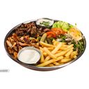 Välj shawarma eller kycklingfilé, tomat, ost, kebab.