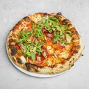 San Marzano tomatsås, mozzarellaost, lufttorkad skinka och färsk ruccola.