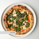 San Marzano tomatsås, mozzarellaost, grillad aubergine, zucchini, kronärtskocka och hyvlad parmesanost.