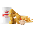 Frasiga, panerade kycklingnuggets gjorda på svensk kyckling. Serveras meddip, tillbehör och dryck. 6 st: 0,6 kg CO2e