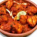 Kycklingfilé marinerad i vitlök, grön chili, ingefära och tillagad med lök, paprika, champagne och rödvinssås.