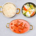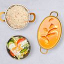 Innehåller mellanstarka kryddor, tomat, lök, ingefära och persilja. Ingår pilaw ris och sallad.
