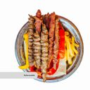 Inkluderar grönsaker och kebabsås. Välj kött i nästa steg.