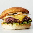 Cheddarost, karamelliserad lök, majonnäs, bacon, picklad jalapeño och barbequesås.