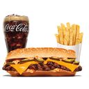 Vad sägs om en grillad burgare med dubbla kött - 226 g närmare bestämt? 4 skivor ost, majonnäs och massa bacon! Serveras med valfri dryck och tillbehör.