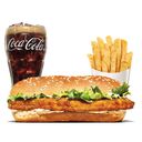 En extra lång burgare med saftig, panerad kycklingfile, färsk sallad och majonäs. Serveras med större King Fries, valfri dryck, en läcker dip och en Crispy Chicken.