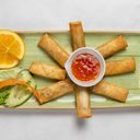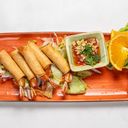 Vegetariska vårrullar, serverade med sweet chili-sås