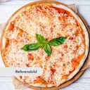Tomatsås, ost, salami, bacon, färska tomter, purjolök.