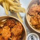 HALAL - Chilimarinerad, panerad & friterad gårdskyckling med raw slaw.Serveras med country fries & harissaaioli, alternativt cruditésallad & vinägrett.Glutenfri.