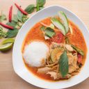 Röd currygryta med bambuskott, kokosmjölk, paprika, limeblad, haricot, zucchini och basilika. (lite stark) Välj variant i nästa steg.