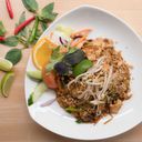 Breda risnudlar wokade på thaivis med en något saltare smak än pad thai, wokat med broccoli, ägg, morötter, purjolök och vitkål.