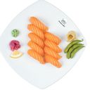 4 lax, 1 räka, 1 talapia, 1 tonfisk, 1 makrill, 1 avokado och 4 makirullar.