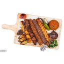 Tre Mixspett, hummus, muhammara, baba ganoush, tzatziki, tabbouleh, krämig vitlök, vitkålssallad, sambousek, kebbeh, spenat, ostrullar. Välj mellan pommes frites eller ris i nästa steg.