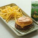 75g nötkött, cheddarost, ketchup, pommes & festis eko