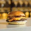 150g nötkött, dubbel cheddarost, silverlök, pickles, majonnäs, ketchup & senap